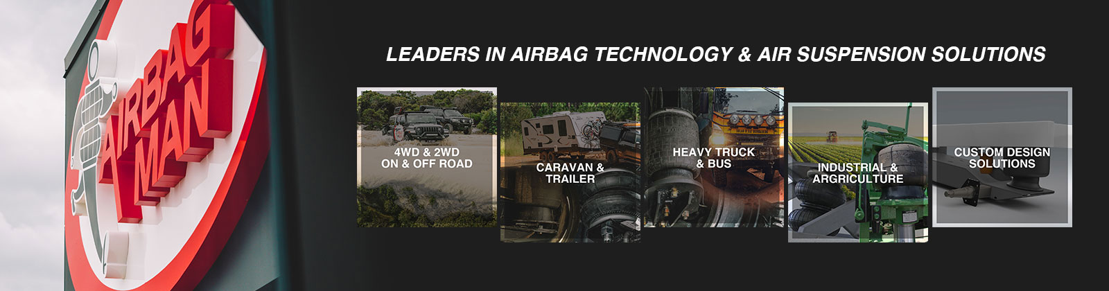Since 1995, Airbag Man has been catering for a wide range of applications from Truck & Bus, 4WD & 2WD, Van, Trailer, Custom, Caravan, Emergency, Amoured, Campers, Industrial, Euro, Roadside Assistance, Agricultural, OEM, Fleet & Movie Special Effects.